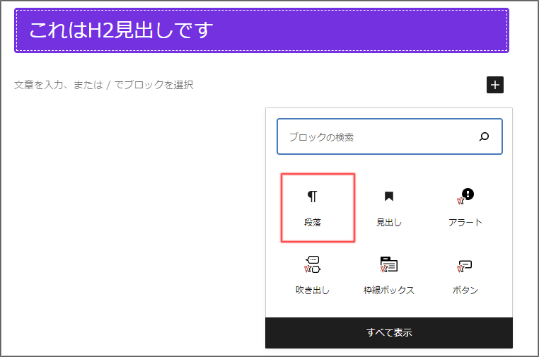 2.段落ブロックを選択します
