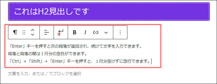 3.段落ブロックに記事を入力します