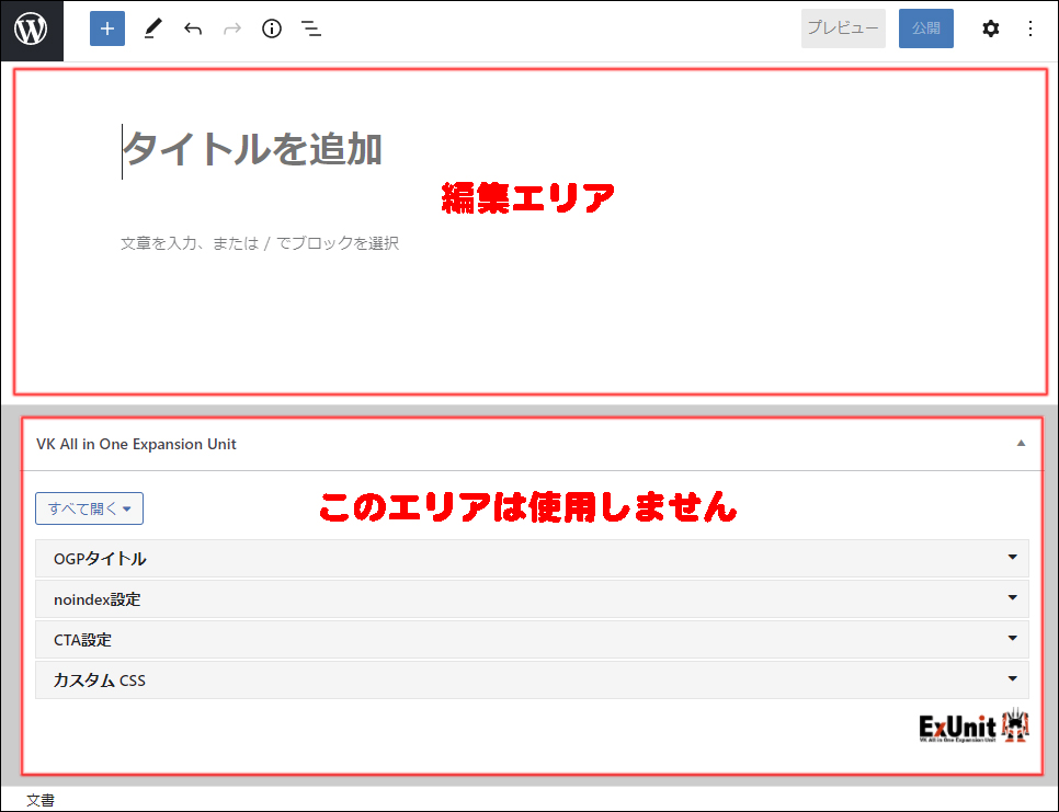 - 編集エリアで記事を書いていきます。